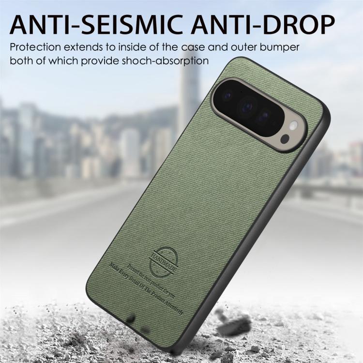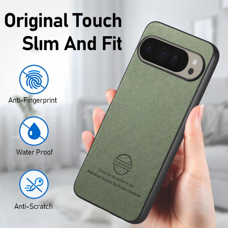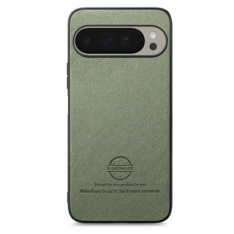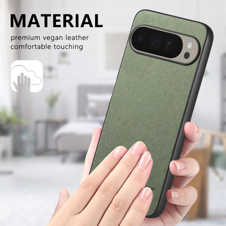 Funda para Teléfono Google Pixel 9 Pro XL con Parte Trasera de Piel y Tejido de Sarga (Verde)