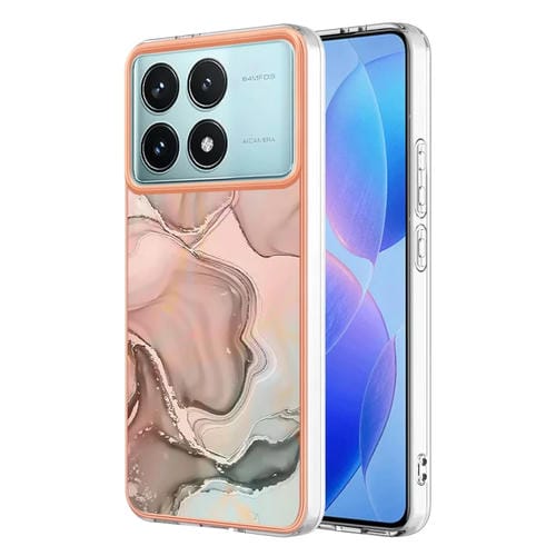 Funda para Teléfono con Revestimiento de Mármol Galvanizado de Doble Cara Imd para Xiaomi Poco F6 Pro 5G (Oro Rosa 015)