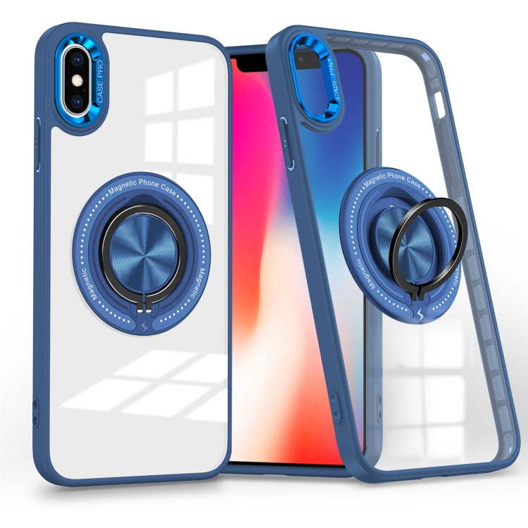 Funda para Teléfono iPhone Xs/X Soporte Anillo Giratorio Magnético (Azul Oscuro)