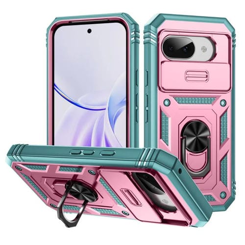 Funda para Google Pixel 9A con Soporte TPU + PC Protección Deslizante (Verde y Rosa)