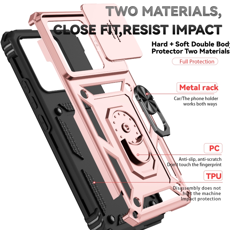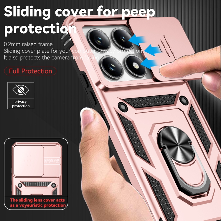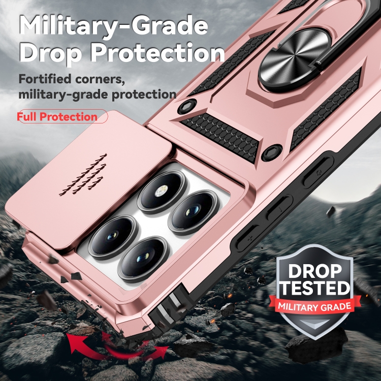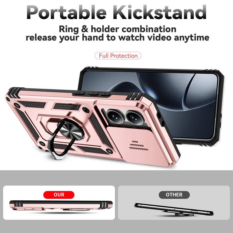 Funda para Teléfono con Soporte Deslizante Camshield para Xiaomi 14T Pro (Oro Rosa)