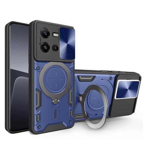Funda para Teléfono con Soporte Magnético Deslizante con Textura de Cd para Vivo V25 5G Global (Azul)