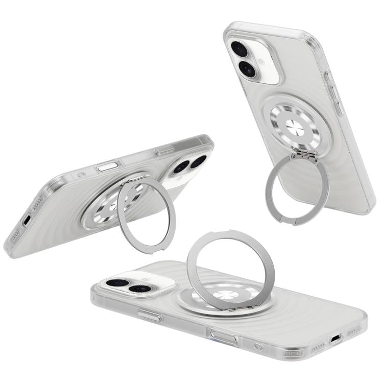 Funda para Teléfono iPhone 16 con Soporte Magsafe y Diseño de Ondas (Transparente y Blanca)