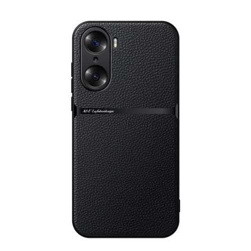Funda para Teléfono Honor 60 Pro con Tapa Magnética de Cuero de Lichi a Prueba de Golpes (Negro)