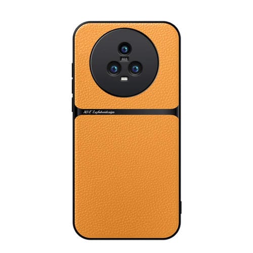 Funda para Teléfono Honor Magic5 con Tapa Magnética de Cuero Litchi y Protección Total (Amarillo)