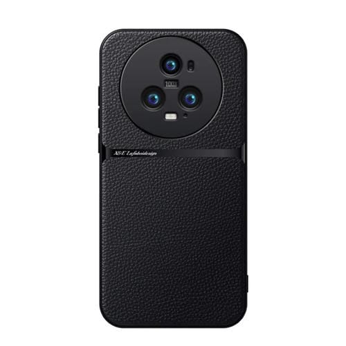 Funda para Teléfono Honor Magic5 Pro con Tapa Magnética de Cuero Litchi y Protección Total (Negro)