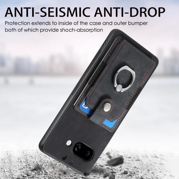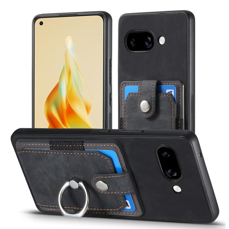 Funda para Teléfono con Tarjetero y Anillo Tacto de Piel Retro para Google Pixel 9A (Negra)