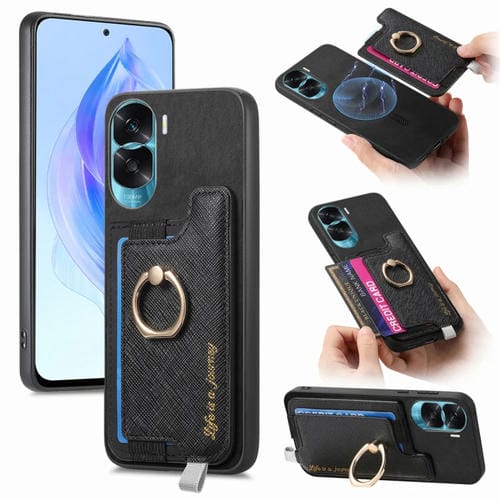 Funda para Teléfono Honor X50I con Tarjetero y Anillo de Cuero Magsafe Cross (Negro)