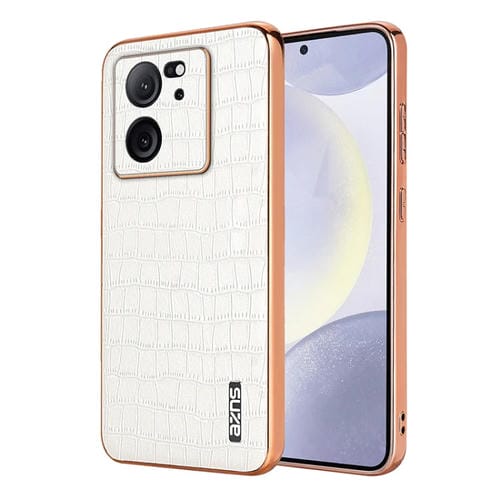 Funda para Teléfono con Textura de Cocodrilo y Marco Galvanizado Azns para Xiaomi 13T/13T Pro (Blanca)