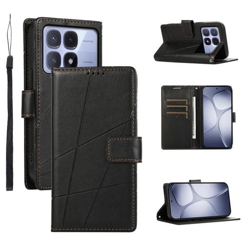 Funda para Teléfono con Textura de Cuero Genuino Pu con Líneas En Relieve para Redmi K70 Ultra (Negro)