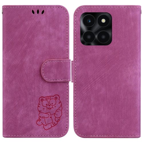 Funda para Teléfono Cuero con Relieve Little Tiger para Honor X6A (Rojo Rosa)