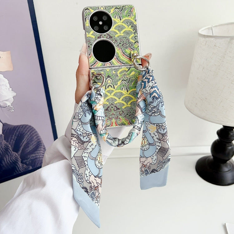Funda para Teléfono Huawei Pocket 2 con Bordado de Nubes y Cobertura Total con Bufanda/Pulsera (Verde)