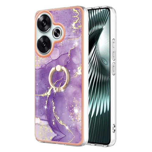 Funda para Teléfono Xiaomi Poco F6 5G con Galvanoplastia de Mármol Imd TPU y Soporte para Anillo (Púrpura 002)