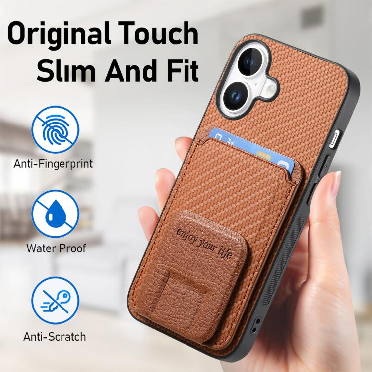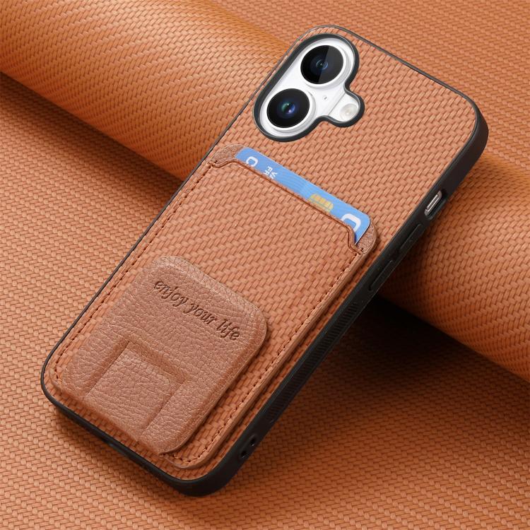 Funda plegable con soporte para tarjetas de fibra de carbono para iPhone 17 (marrón)