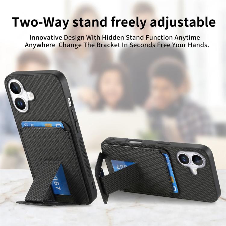 Funda plegable con soporte para tarjetas de fibra de carbono para iPhone 17 (negra)