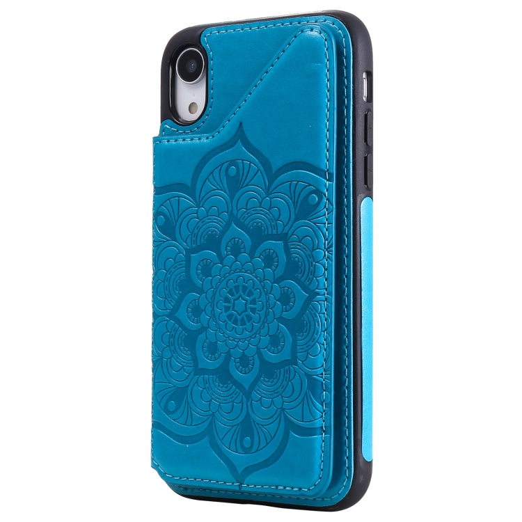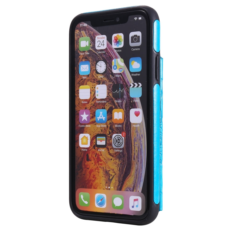 Funda Protectora para iPhone Xr con Soporte Ranuras para Tarjetas y Marco de Fotos (Azul)