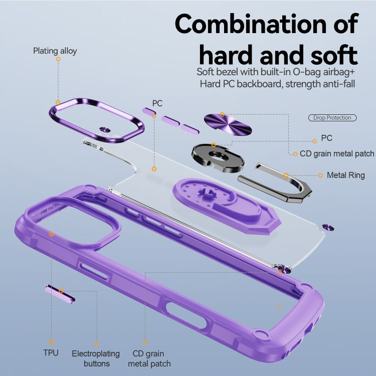 Funda Protectora de Lente TPU + PC para iPhone 16 Pro Max con Soporte de Anillo (Morado)