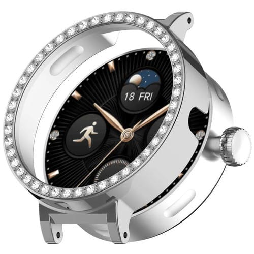 Funda protectora para reloj inteligente Honor Choice SAGA 2 con una sola fila de diamantes y media cobertura hueca para PC (plateada)
