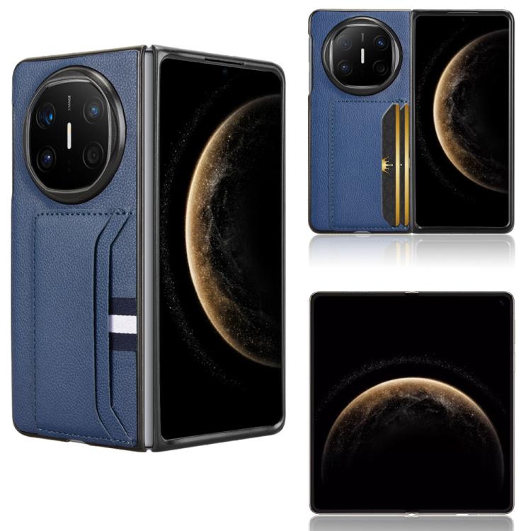 Funda Trasera Huawei Mate X6 con Ranuras para Tarjetas y Textura de Lichi (Azul)