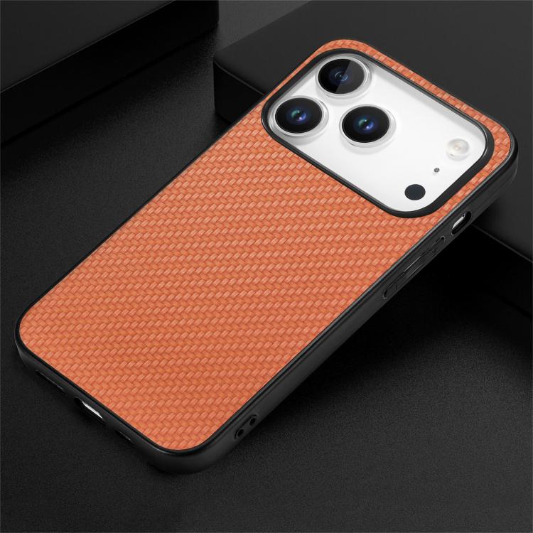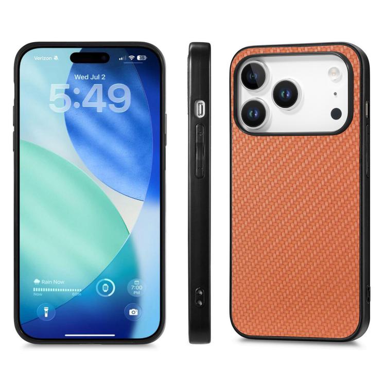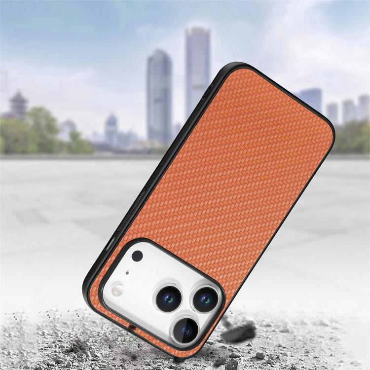 Funda trasera de cuero con textura de fibra de carbono para iPhone 17 Pro Max (marrón)