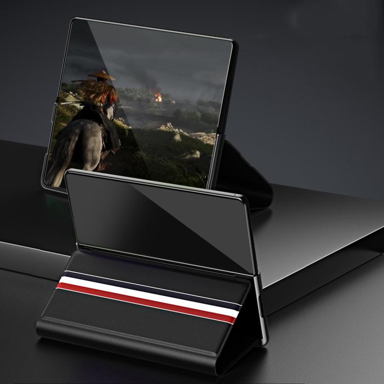 Funda trasera de PU con textura de lichi para Samsung Galaxy Z Fold7 5G con soporte (negra)