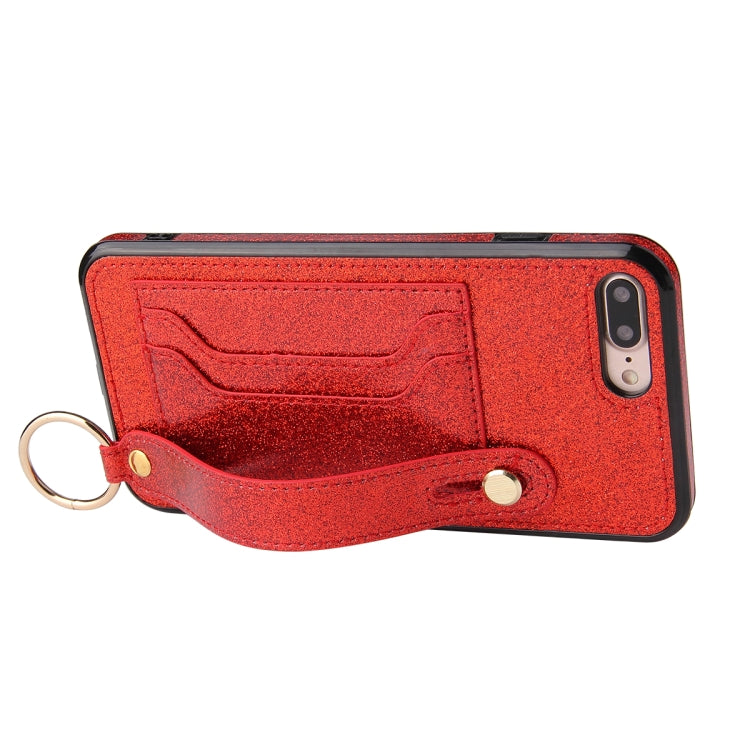 Funda Protectora iPhone 8 Plus 7 Plus Glitter Powder PU TPU Soporte Ranuras Tarjetas Correa (Rojo)