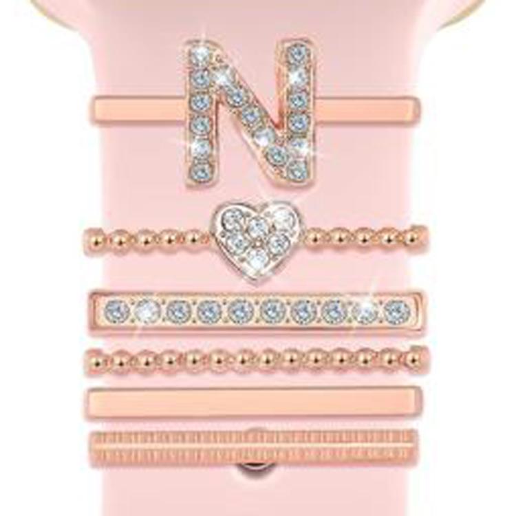 Juego de 6 correas de silicona universales para reloj inteligente, anillos decorativos de metal, talla N (oro rosa)