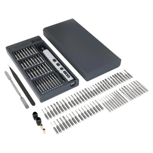 El Juego de Destornilladores Eléctricos de Precisión Jiafa 76 en 1 Profesional de Larga Duración es una herramienta multifuncional diseñada para usuarios que requieren precisión y eficiencia en tareas de reparación electrónica y mecánica. Compatible con una amplia variedad de dispositivos y componentes, este Juego combina operación manual y eléctrica, facilitando el manejo de tornillos de precisión en diferentes aplicaciones. Cuenta con una Batería de litio reCargable de 3,7 V y 350 mAh que permite un uso continuo de hasta 120 minutos tras una Carga rápida inferior a 40 minutos. Su diseño incorpora una Pantalla LED que muestra en tiempo real el progreso de la reparación, además de una lámpara LED sin sombras para una iluminación óptima del área de trabajo. Este Conjunto de herramientas está pensado para profesionales y usuarios que reparan por cuenta propia, ofreciendo una solución Completa y duradera para trabajos detallados.