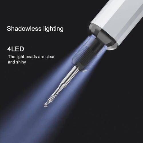 • Voltaje de entrada: 3,7 V; Batería de litio de 350 mAh; Tiempo de Carga: <40 minutos; Velocidad sin Carga: 200 r/min; Par manual: 3 Nm; Par eléctrico: 0,25-0,35 Nm; 5 niveles de velocidad; Tiempo de funcionamiento continuo: 120 minutos; Pantalla LED para visualización en tiempo real; Lámpara sin sombras de 4 LED; Función manual y eléctrica integrada