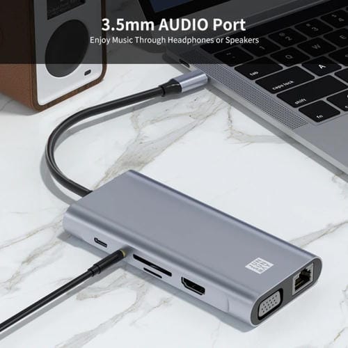 Adaptador Estación de Acoplamiento Junsunmay 11 en 1 Tipo-C a 4K HDMI VGA RJ45 Pd Centro de Carga Rápida