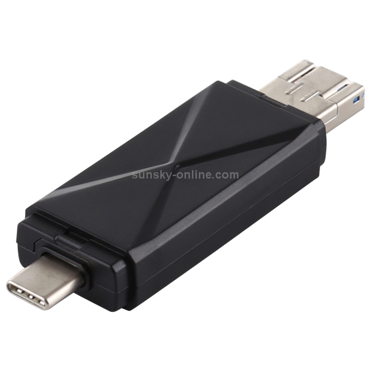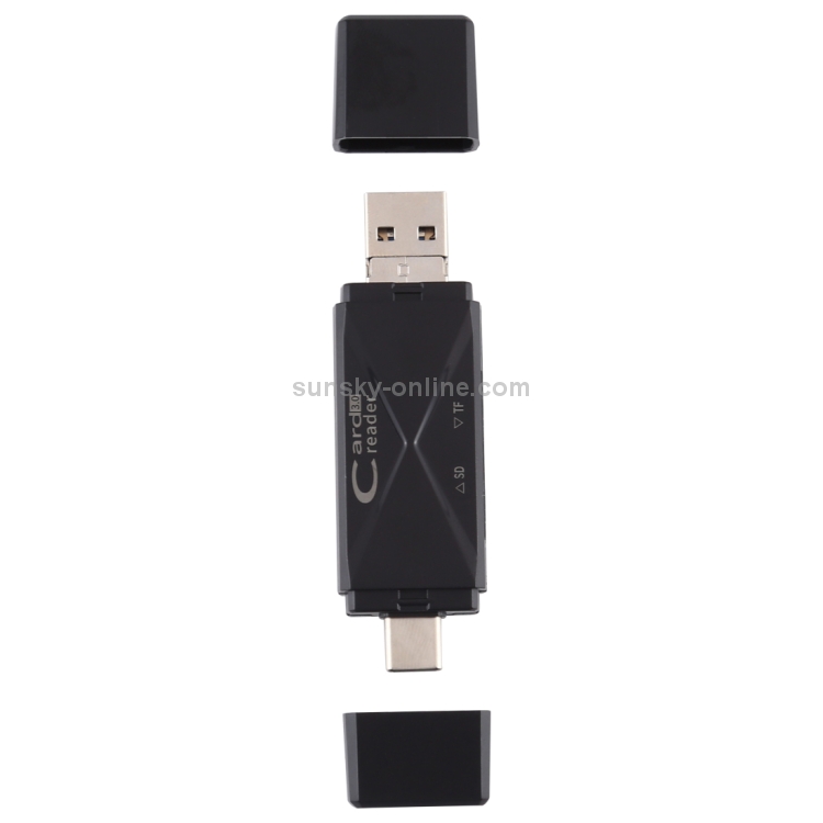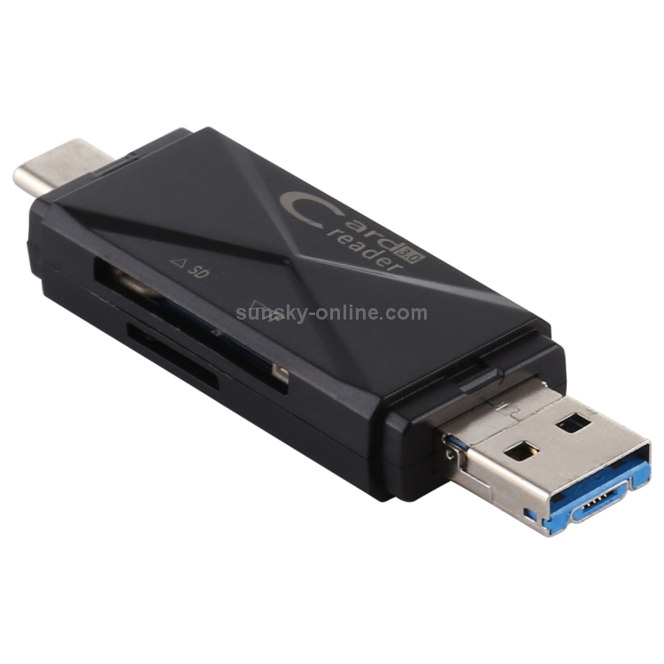 - 1x Lector de Tarjetas USB-C Type-C + SD + TF + Micro USB a USB 3.0 (Negro)