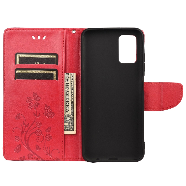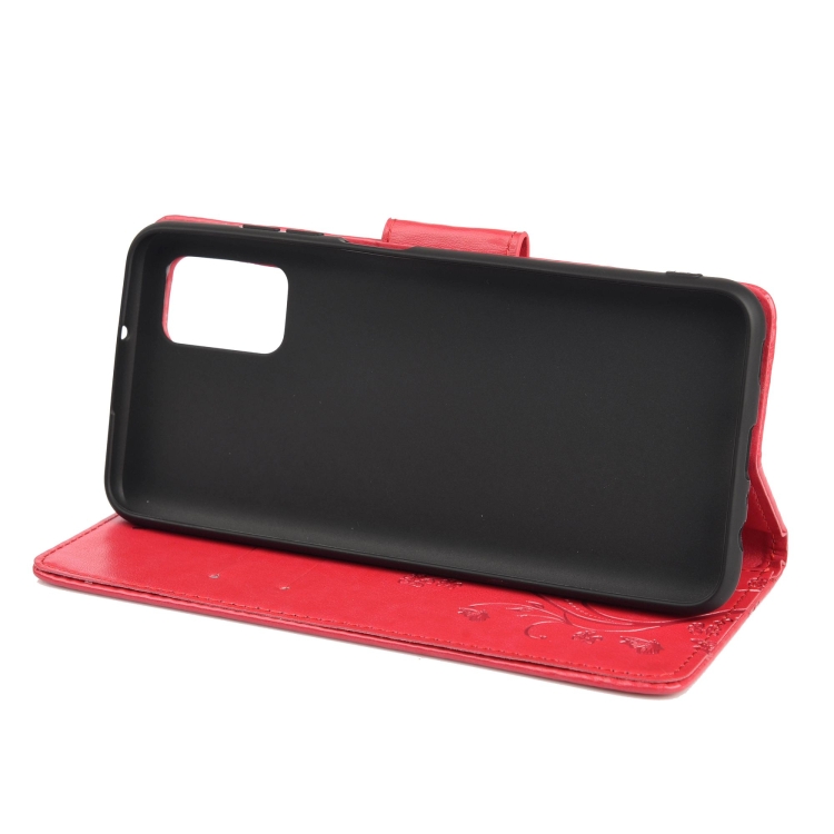 Modelo de Flor de Mariposa Funda de Cuero Horizontal con Soporte y Tragamonedas y Billetera para Xiaomi Redmi 10 (Rojo)