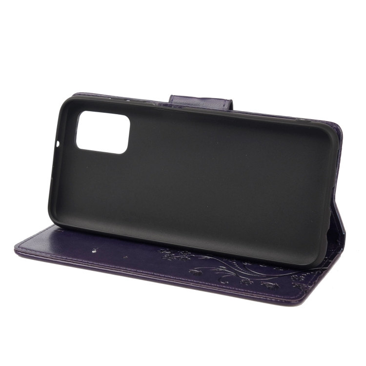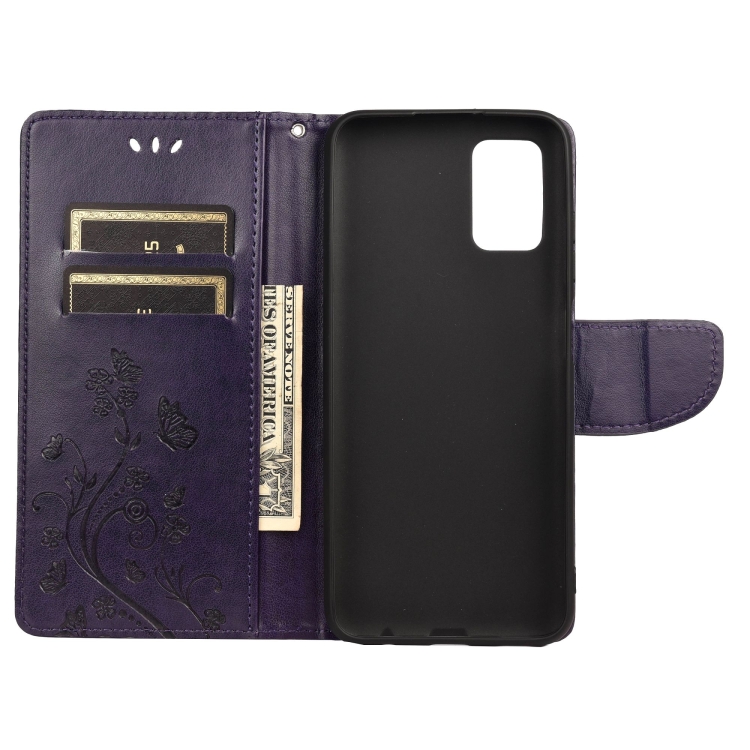 Modelo de Flor de Mariposa Funda Horizontal de Cuero con Soporte y Tragamonedas y Billetera para Xiaomi Redmi 10 (Púrpura Profundo)