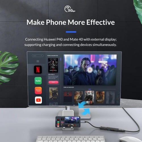 • 1x Estación de Acoplamiento Multifuncional Orico MDK-5P-GY-BP 5 en 1 Tipo C USB-C (Gris)