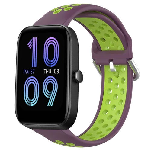 Correa de Reloj para Amazfit Bip3 20mm Silicona Deportiva Transpirable Perforada (Púrpura + Lima)