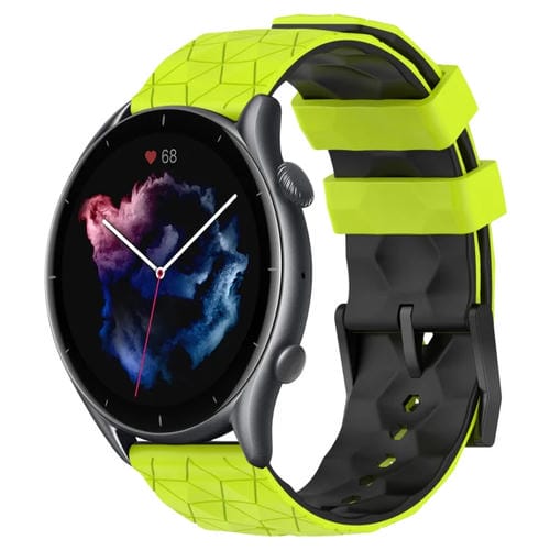 Banda de Reloj Silicona para Amazfit GTR 3 22mm Textura de Fútbol (Verde Lima + Negro)