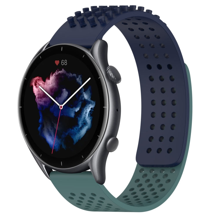 Correa de Silicona para Amazfit GTR 3 con Puntos 3D Transpirables y Orificios 22mm (Azul Medianoche + Verde Oliva)