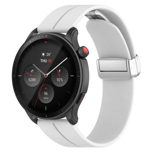 Correa de Reloj para Amazfit GTR 4 con cierre plegable magnético y hebilla plateada de silicona (Blanco)