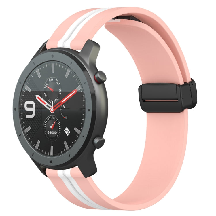 Correa de Reloj de Silicona para Amazfit GTR 47mm 22mm con Cierre Magnético Plegable (Rosa + Blanco)