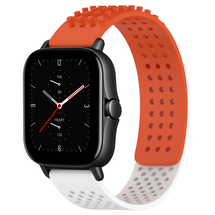 Correa de Reloj para Amazfit GTS 2 Silicona Transpirable con Puntos 3D y Orificios 20mm (Naranja + Blanco)