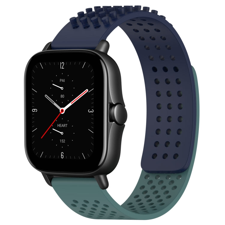 Correa de Silicona para Amazfit GTS 2E con Puntos 3D Transpirables y Orificios 20mm (Azul Medianoche + Verde Oliva)