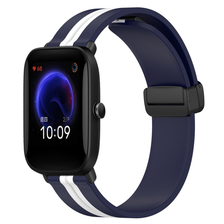 Correa de Reloj para Amazfit Pop 20mm Silicona con Cierre Magnético Plegable (Azul Medianoche + Blanco)