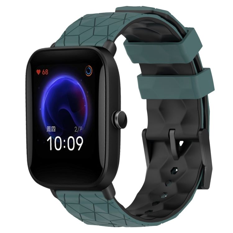 Para Amazfit Pop 20mm Textura de Fútbol Banda de Reloj de Silicona de Dos Colores (Verde Oliva + Negro)