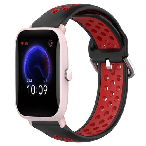 Correa de Reloj 20mm Amazfit Pop Pro Silicona Deportiva Transpirable Perforada (Negro + Rojo)