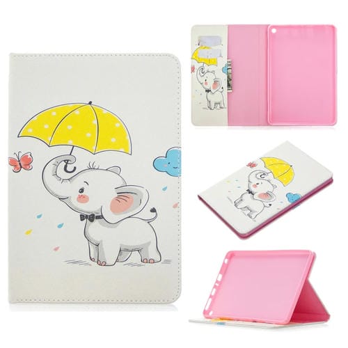 Funda de Cuero para Amazon Kindle Fire HD8 (2020) con Soporte, Ranuras para Tarjetas y Billetera (Paraguas Elefante)