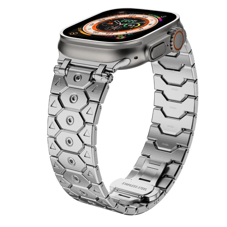 Para Apple Watch de 46 mm, 49 mm, 45 mm y 44 mm, con diseño octogonal de acero inoxidable (plateado).