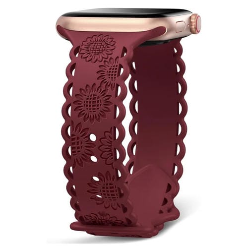 Correa para Apple Watch SE 40mm Silicona con Relieve de Girasol (Rojo Vino)