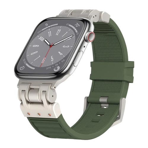 Correa de Silicona para Apple Watch Series 8 45mm a Cuadros Mecha Metal (Verde Bosque)