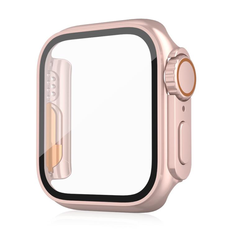 Para Apple Watch Series 9/8/7 de 41 mm xDfind Cambiar a Ultra 49 mm Película de vidrio templado Cubierta de reloj de PC integrada (oro rosa + naranja)