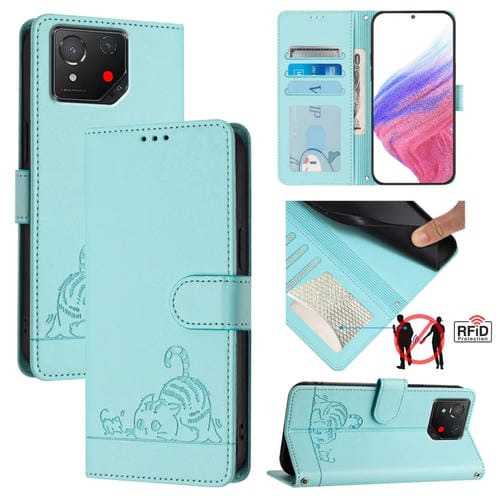 Estuche para Asus Rog Phone 8 de Cuero Rfid con Patrón En Relieve y Cordón (Verde Menta)
